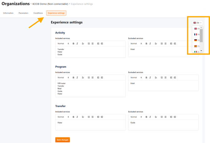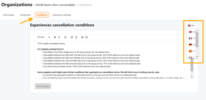 - Enter your default cancellation conditions for experiences, which will apply to: