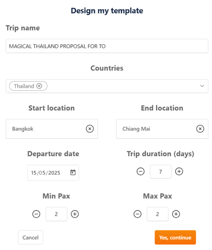 💡 The Trip Designer interface will load with your parameters pre-set.