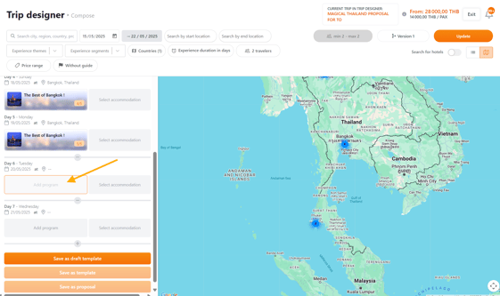 As a DMC, you can proactively create a trip proposal and send it directly to your connected Tour Operators (TOs). This helps speed up the co-construction process, provide guidance, and promote your suggested itineraries.