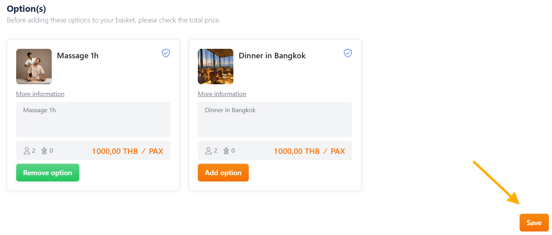 📅 Day-specific options | Applied to a specific day (e.g., massage on Day 3, cooking class on Day 4) |