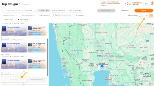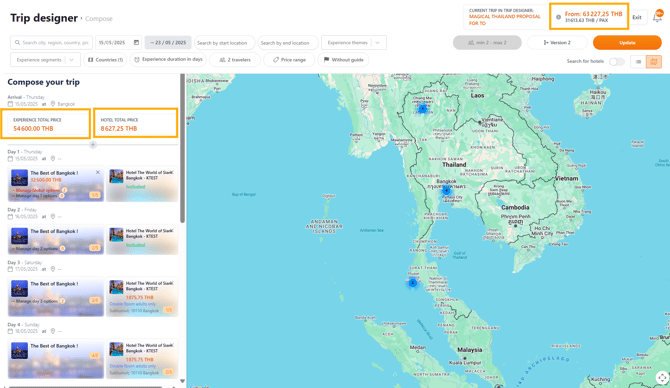 📌 Displayed in the top-right of the Trip Designer ("Price From") based on the lowest room category. The final price may vary depending on TO room selections during booking.