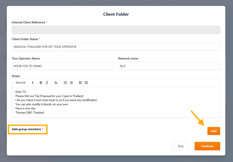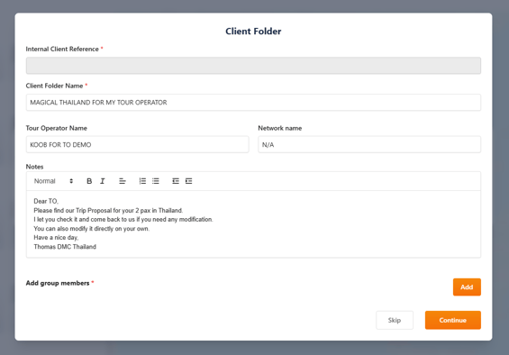 ✅ Create a client folder and assign the trip to a connected TO in just a few clicks