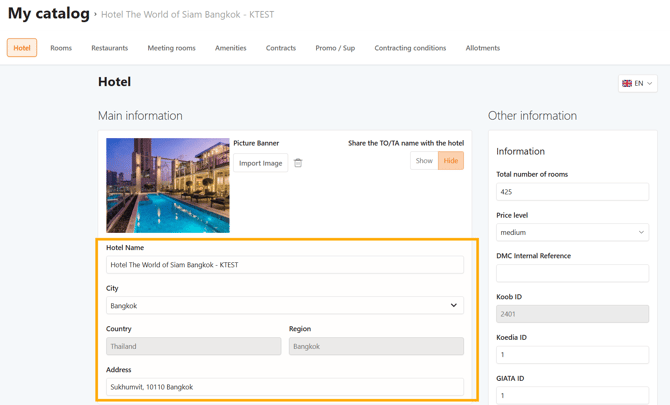 💡 Tip: Accurately categorizing hotels ensures better searchability for TOs.