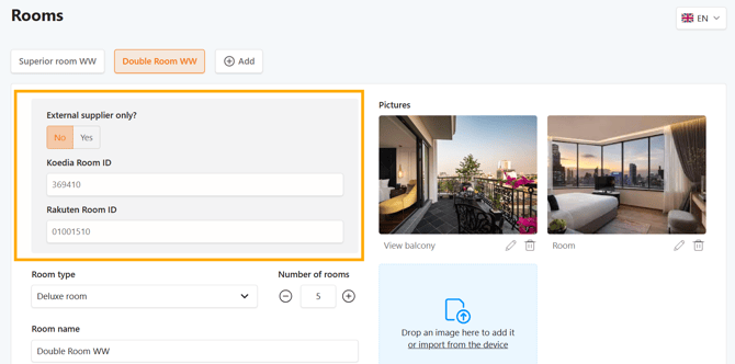✅ Note: Please consult KOOB support if you wish to set up room information for Live Inventory Channel Manager or Bedbank bookings.