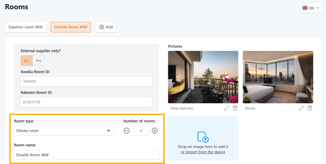 💡 Tip: Ensure the room type matches the official hotel naming to maintain consistency across distribution channels.