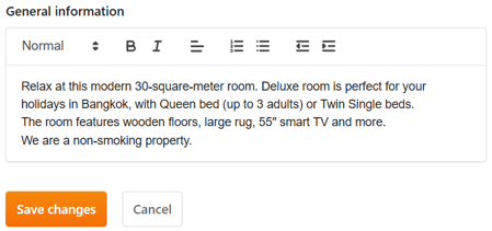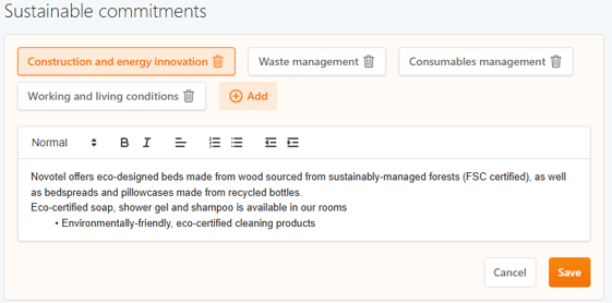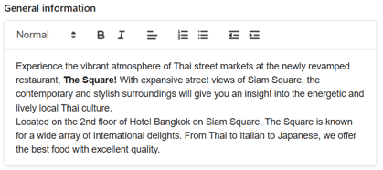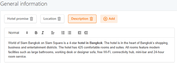 This section allows you to add extra descriptions to enhance the hotel factsheet.