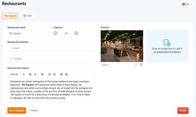✅ Add new hotels and manage their details, including rooms, restaurants, meeting spaces, and amenities.