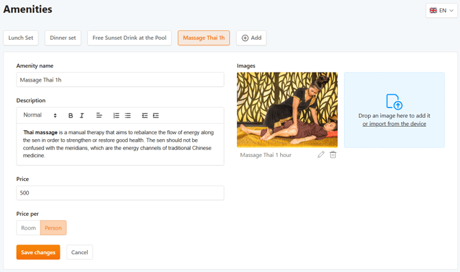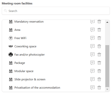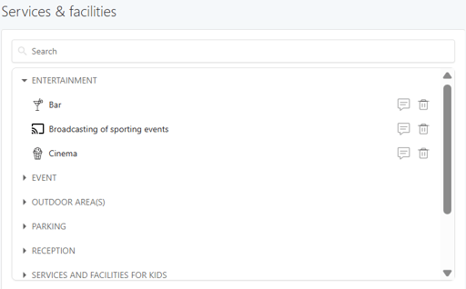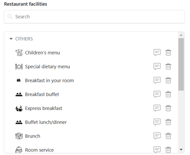 ✅ Tip: Click the message icon next to a facility to add details (e.g., spa opening hours, pool rules).