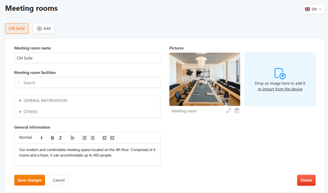 ✔ Note : Meeting Room facilities are automatically translated by KOOB.