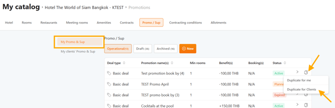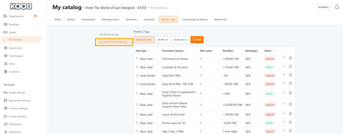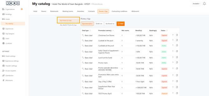 - How to set up the Hotel Promotions & Supplements for me and for my TO ?