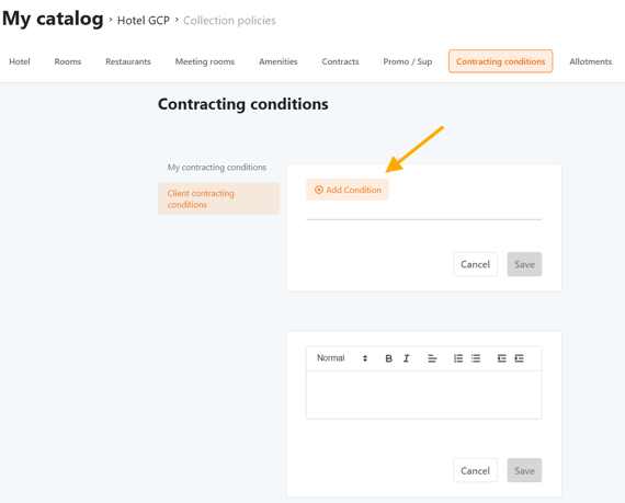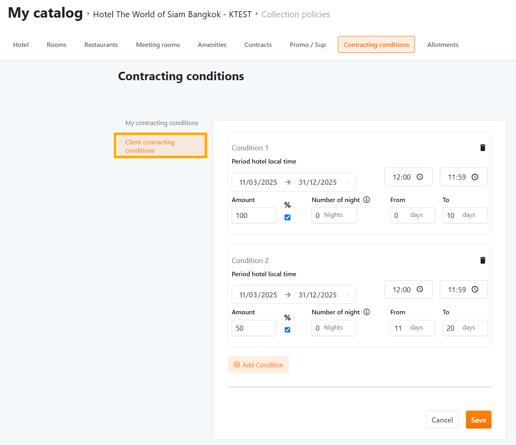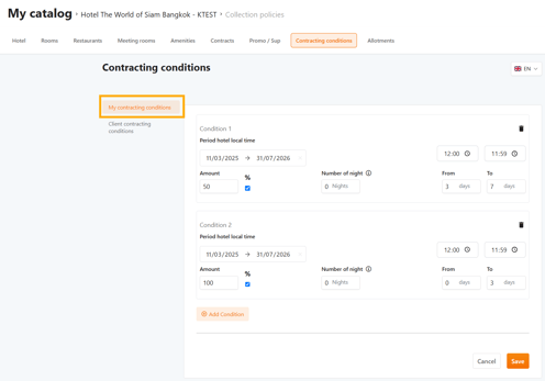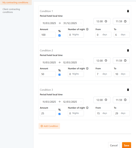 - Hotel-Specific Conditions → Define specific sales conditions or partner agreements.