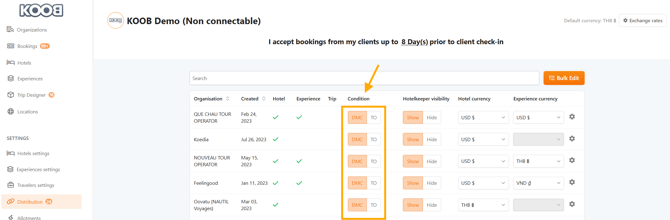 - Toggle "Share TO/TA name with the hotel" to control whether TOs' names appear on hotel bookings.