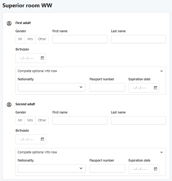 • Tour Operator Name → Inform the hotel about which TO the booking is for (optional).