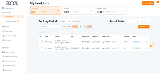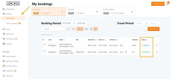 • Go to the "My Bookings" section in the KOOB Dashboard.