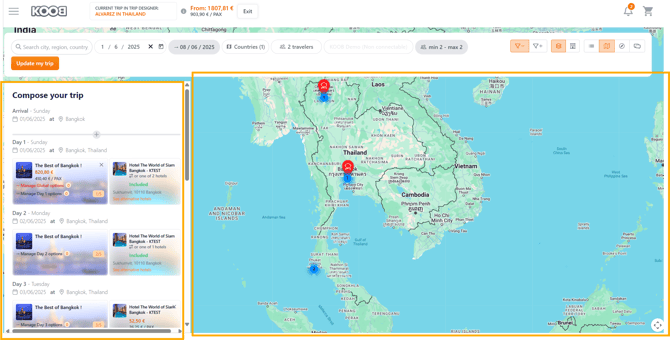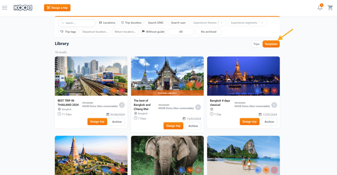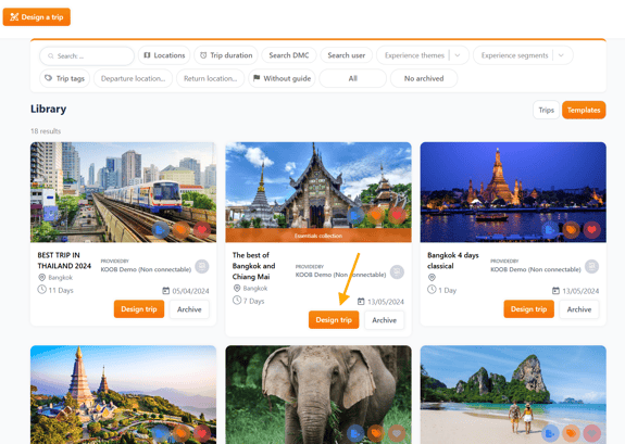 KOOB’s Trip Designer allows you to reuse your own trip templates saved in My Library. This is ideal for Tour Operators (TOs) who frequently sell similar itineraries. Instead of building from scratch or using a DMC template, you can start directly from one of your own customized trips.
