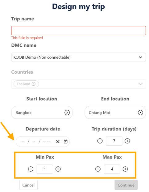 📅 Departure Date | The day the trip starts on-site (KOOB uses this to trigger correct pricing validity) |