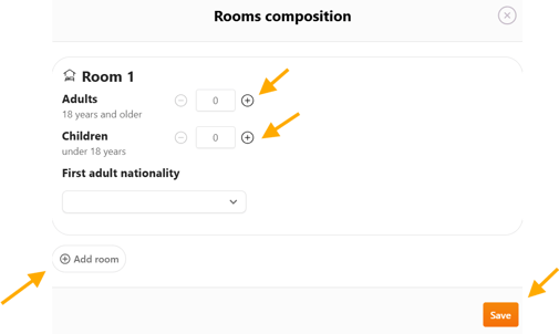 • The β€˜+Add Room’ button allows you to add as many rooms as you wish.