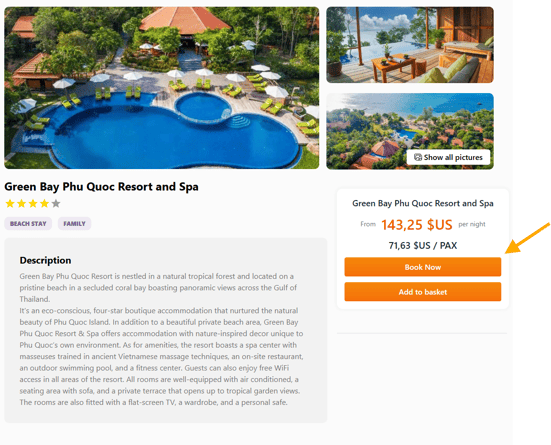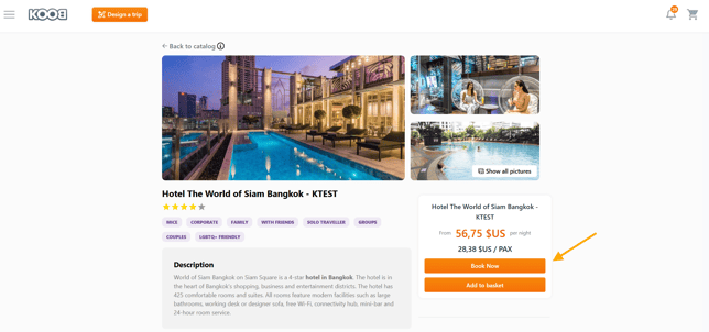 You can continue to navigate between the Hotels and Experiences marketplaces to add more elements to your basket. You can then book all services at once.