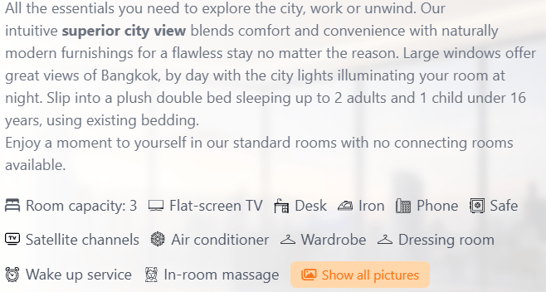 • Star Rating β†’ Official star ranking (e.g., "Hotel The World of Siam Bangkok ⭐⭐⭐⭐")