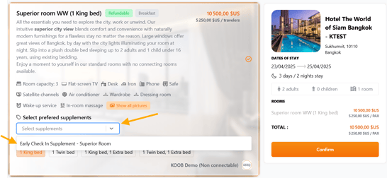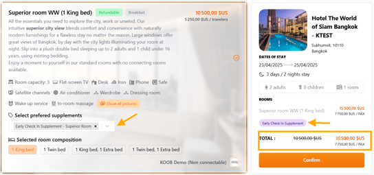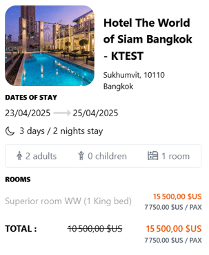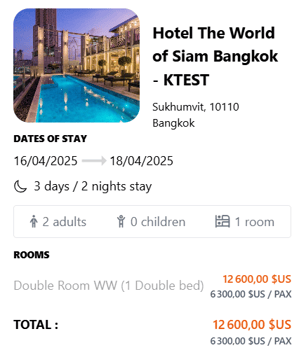 • On the right you will find a summary of the room, the dates, the number of nights, the price and any promotions or supplements (if applicable).