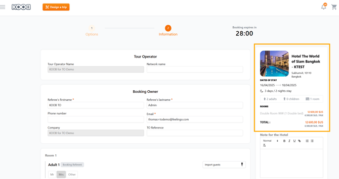 KOOB ensures every hotel reservation is tracked, updated and communicated through clear statuses and automatic notifications. This guarantees transparency between the TO, the DMC, and the hotel.