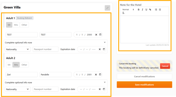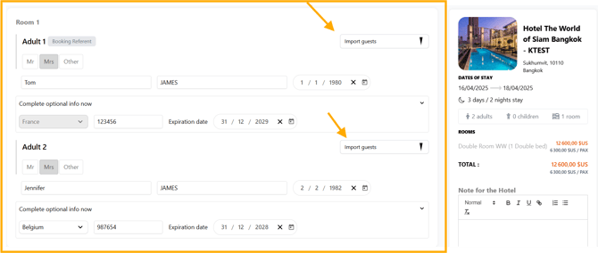 The difference with the Hotel From scratch booking seen in the first part of this article is that with a booking from a Client Folder, the client information is already ready to be imported into this confirmation page.