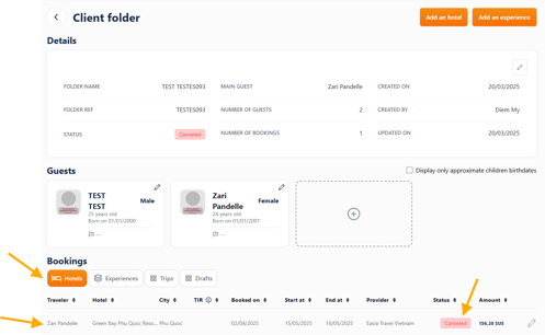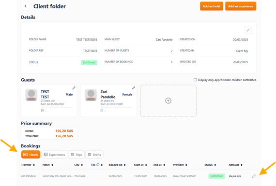 If a booking has already been confirmed or sent, you can update it directly from the Client Folder.