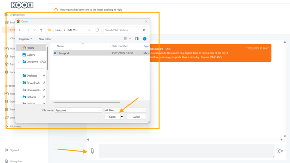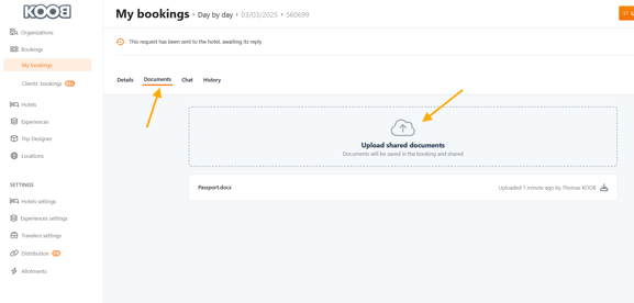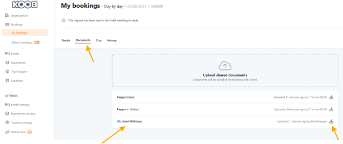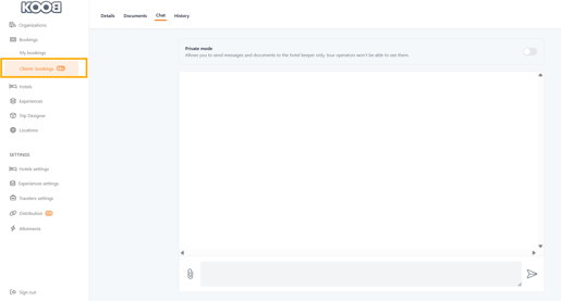 - By default, messages and documents sent via KOOB are visible to both the hotel and the TO in TO bookings (not DMC bookings).