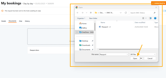 ✅ Yes! Use the Documents tab in the booking details to upload and send files.
