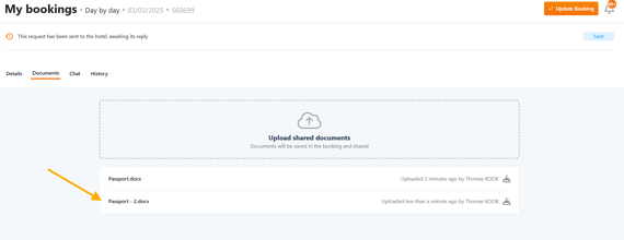 - Attached documents can be found in the Documents section of booking details. You can download them by clicking on the download symbol.