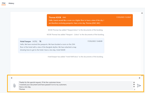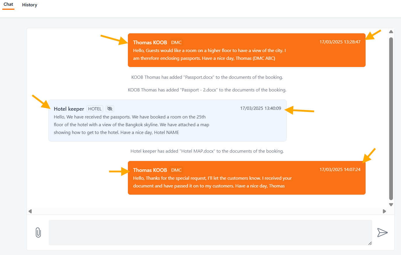 ✅ Yes! The Chat History stores all interactions linked to a booking.