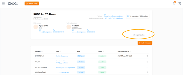 🚀 Objective: Optimize your organization settings in KOOB to activate booking access and streamline communication with DMCs.