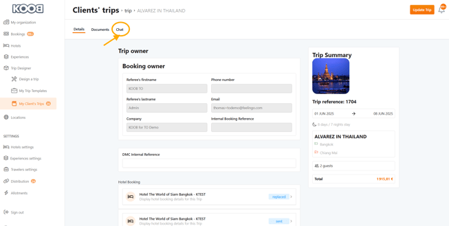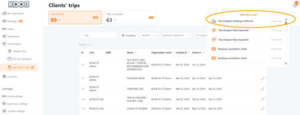 When a TO confirms a trip, KOOB automatically notifies the assigned DMC: