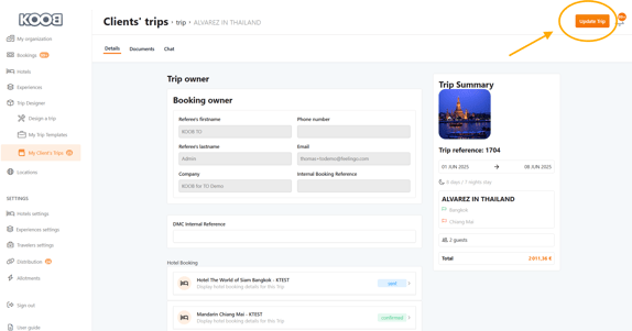 ✅ You can fully edit a confirmed trip using the KOOB Trip Designer