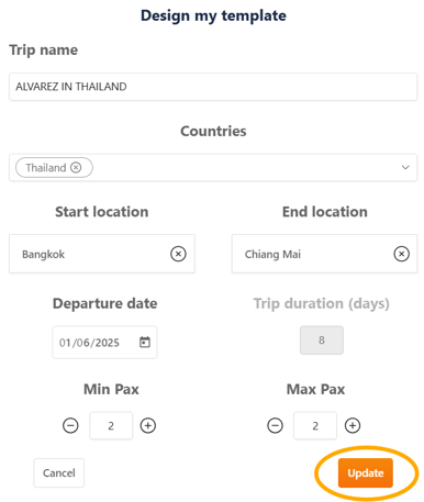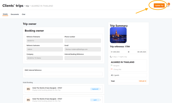 • Click 🟠 Update Trip in the top-right corner to begin editing