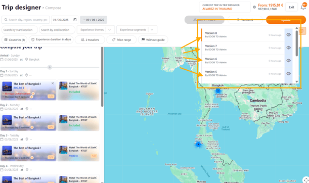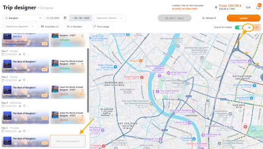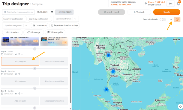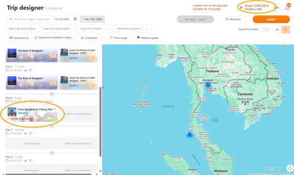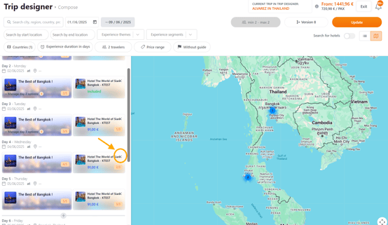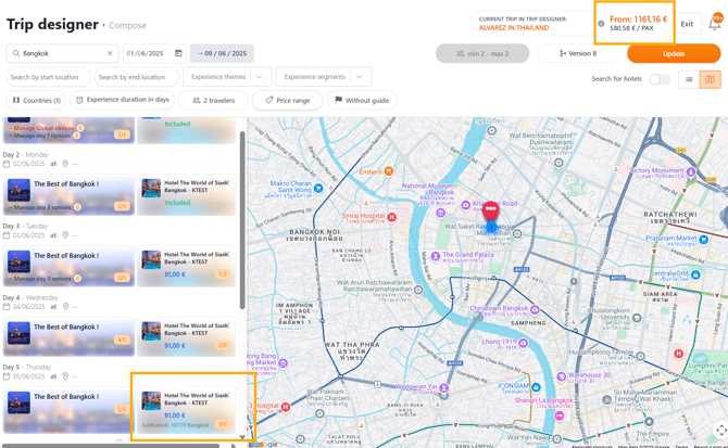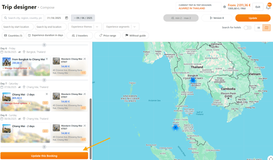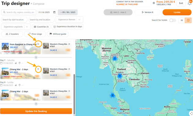 Once inside the Trip Designer (confirmed trip view), you can modify all aspects of the itinerary.
