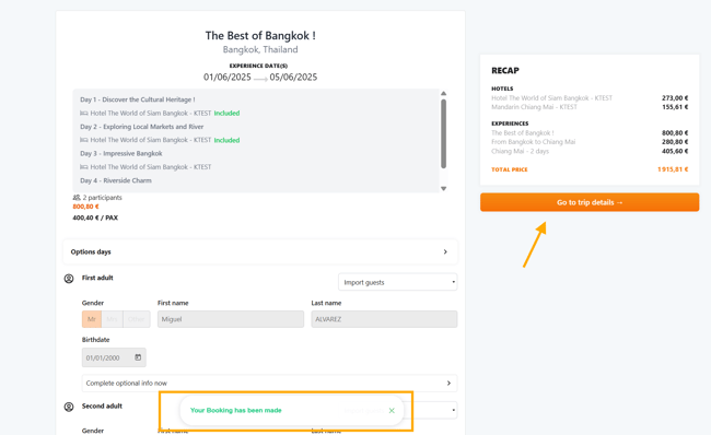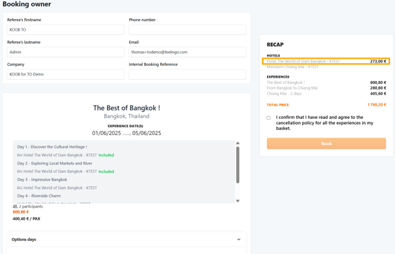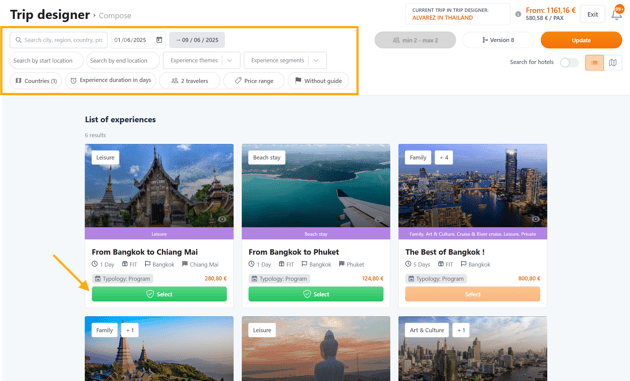 📌 Note: Date or pax changes will automatically recalculate prices and affect experience availability.