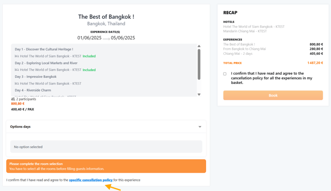 • You can read the cancellation policy by ticking the checkbox for each component.