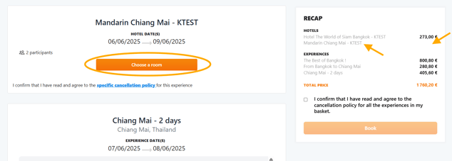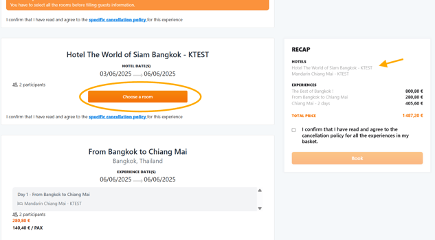 • 🔲 Select hotel rooms for each hotel section by clicking “Choose a room”