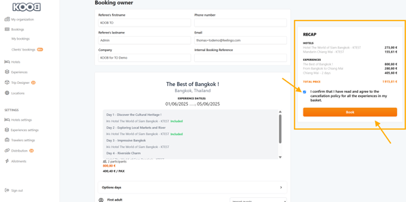 • ✅ Once complete, click "Book" to validate and launch all bookings