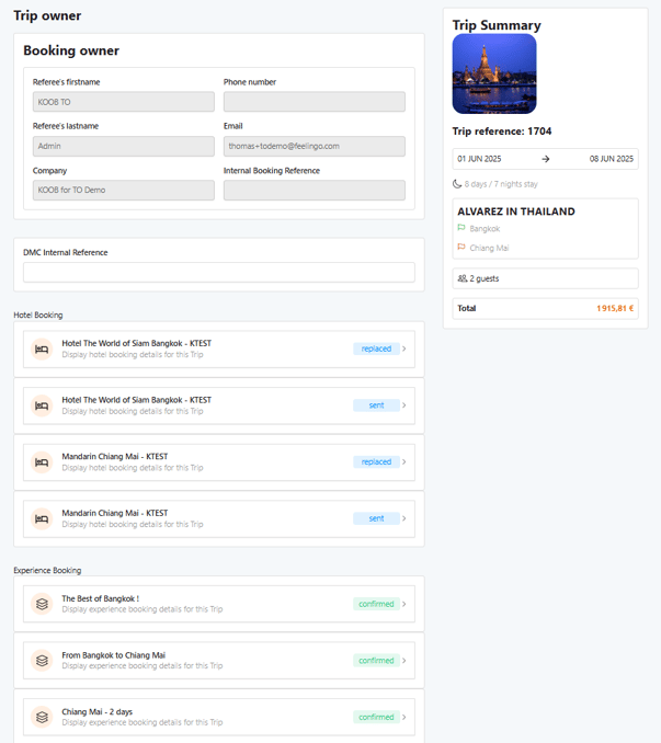 • TO linked to the booking (e.g., KOOB for TO Demo)