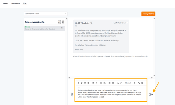 📩 Yes, an automatic notification is sent, and you can use the Trip Chat to explain changes.
