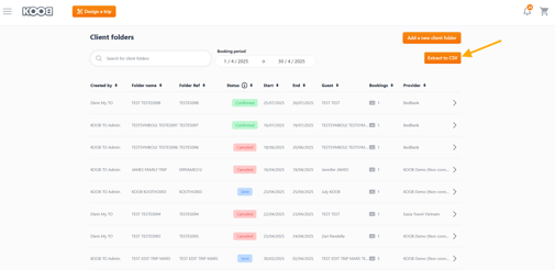 You can extract data for both hotels and experiences directly from the Client Folders view.