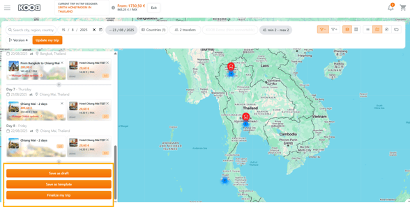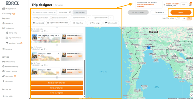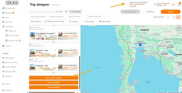 ✅ Access trip drafts and edit the itinerary in the Trip Designer