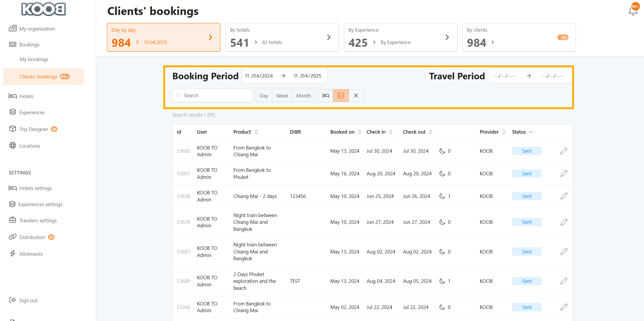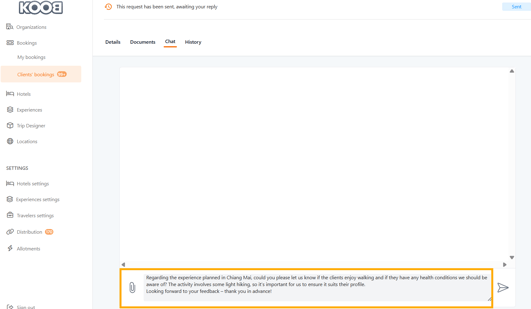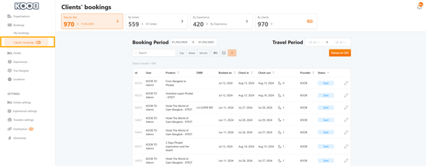 Managing experience bookings efficiently is crucial for Destination Management Companies (DMCs) to ensure smooth operations, accurate service delivery, and satisfied Tour Operators (TOs). KOOB provides a centralized system to track, confirm, modify, or cancel all experience bookings, including optional add-ons and internal references.