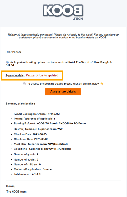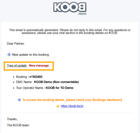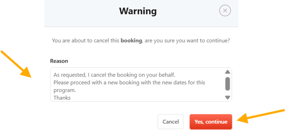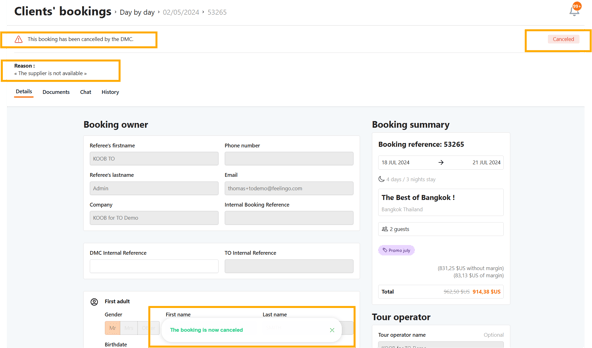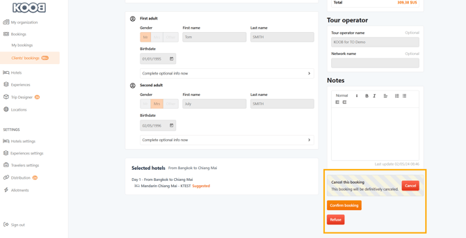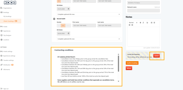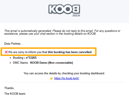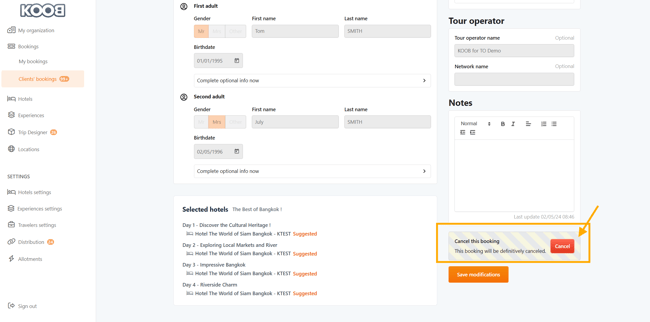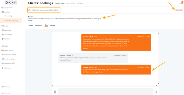 💡 Tip: When you cancel or modify a booking, KOOB automatically notifies the TO and updates the booking status.