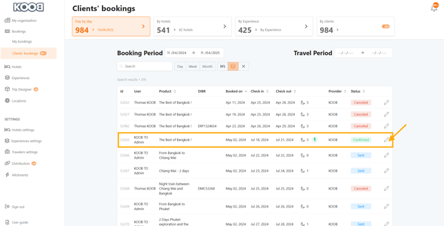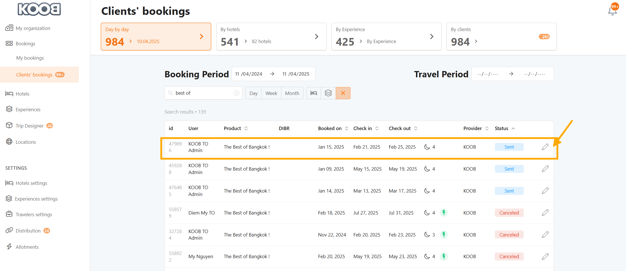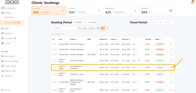 Go to “My Clients’ Bookings” in your KOOB dashboard