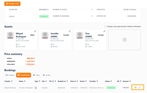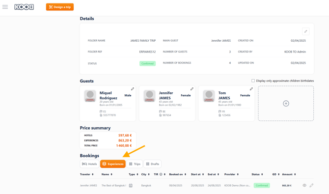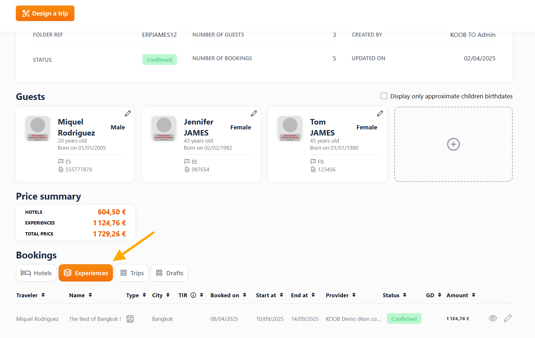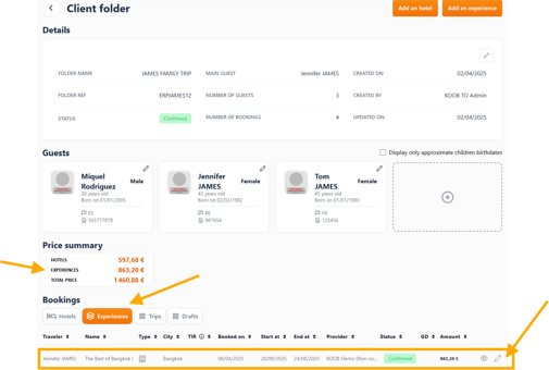 📌 Disclaimer : We strongly recommend creating all new experience bookings directly from an existing Client Folder.