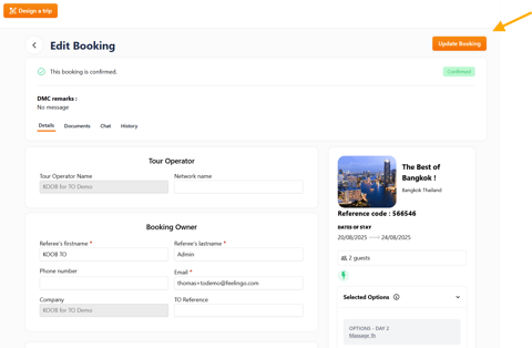 💡 Tip: The DMC is instantly notified of any chat message or booking update.