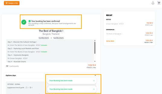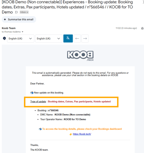 ⚠️ If there is a significant change in dates, number of pax, options/extra or even hotels and room types, the DMC and hotel(s) receive notification emails.